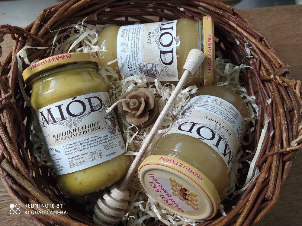 Proponujemy zestawy prezentowe, skomponowane zgodnie z Państwa oczekiwaniami. Gotowe upominki mogą być zapakowane w praktycznym koszyczku, na oryginalnych podstawkach drewnianych, bądź w innej formie. Oprócz produktów pszczelich mogą się tam znaleźć wyroby rękodzielnicze z lnu lub bawełny (torby zakupowe lub ściereczki kuchenne), zdrowe i naturalne soki, bądź też inne przetwory, które oferujemy.